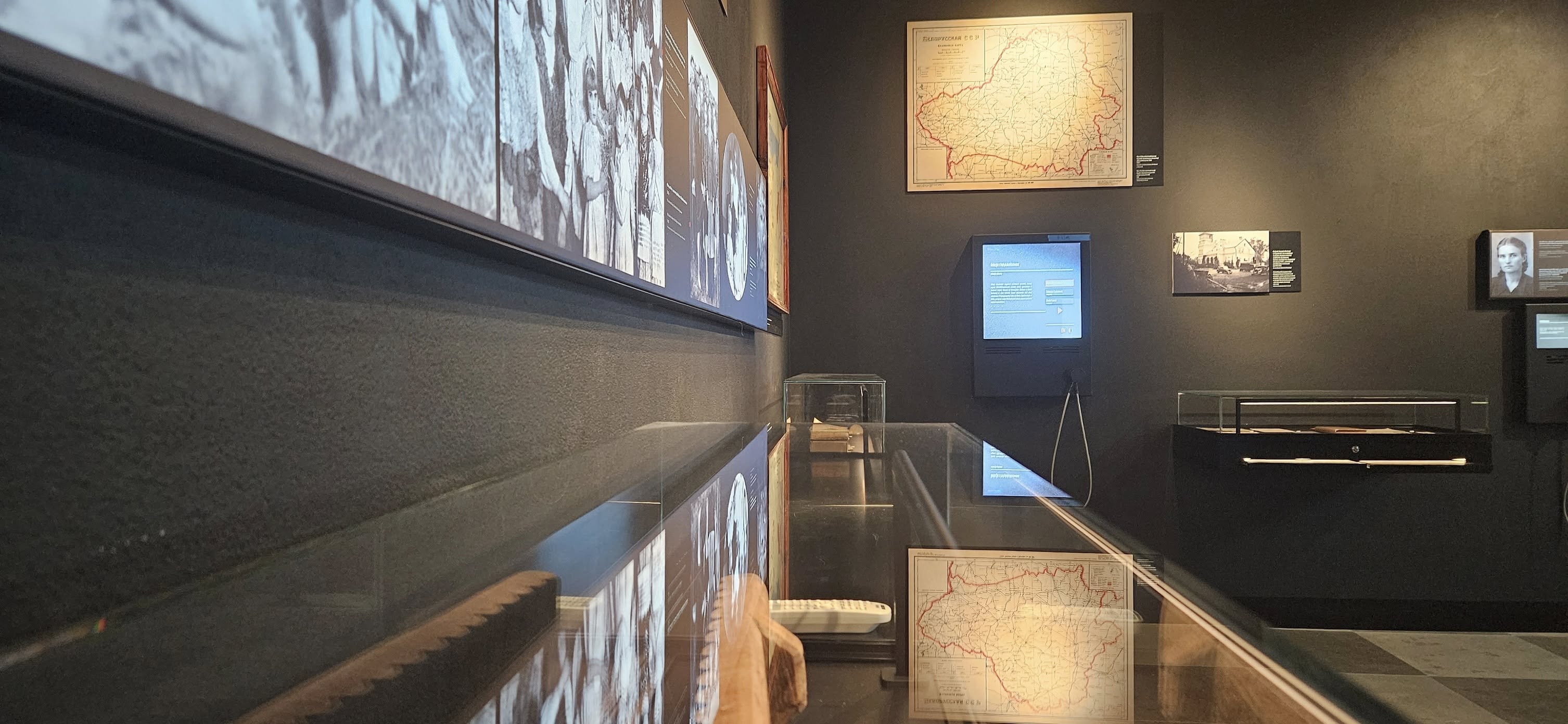 Jedno ze stanowisk, które uważamy za najbardziej autorskie w całej wystawie, to dwuekranowa instalacja z interaktywną mapą Puszczy Augustowskiej. Pierwszy ekran to panel sterowania , drugi ekran to wielkoformatowa mapa zbudowana na podstawie mapy Wojska Polskiego z 1923 roku. Na tej mapie — jak szpilki w sztabie — oznaczone są miejsca poszczególnych wydarzeń obławy. Całość oparta o nowoczesny silnik 3D pracujący w czasie rzeczywistym