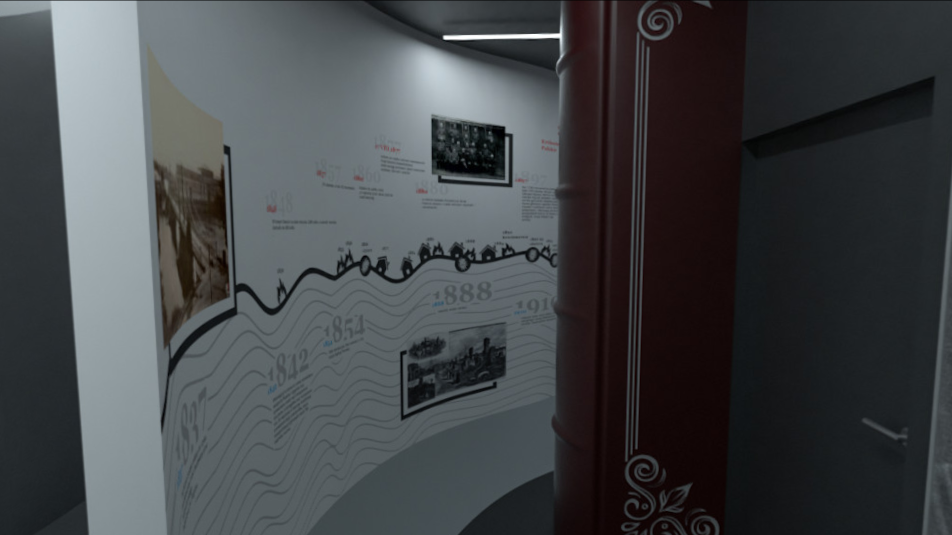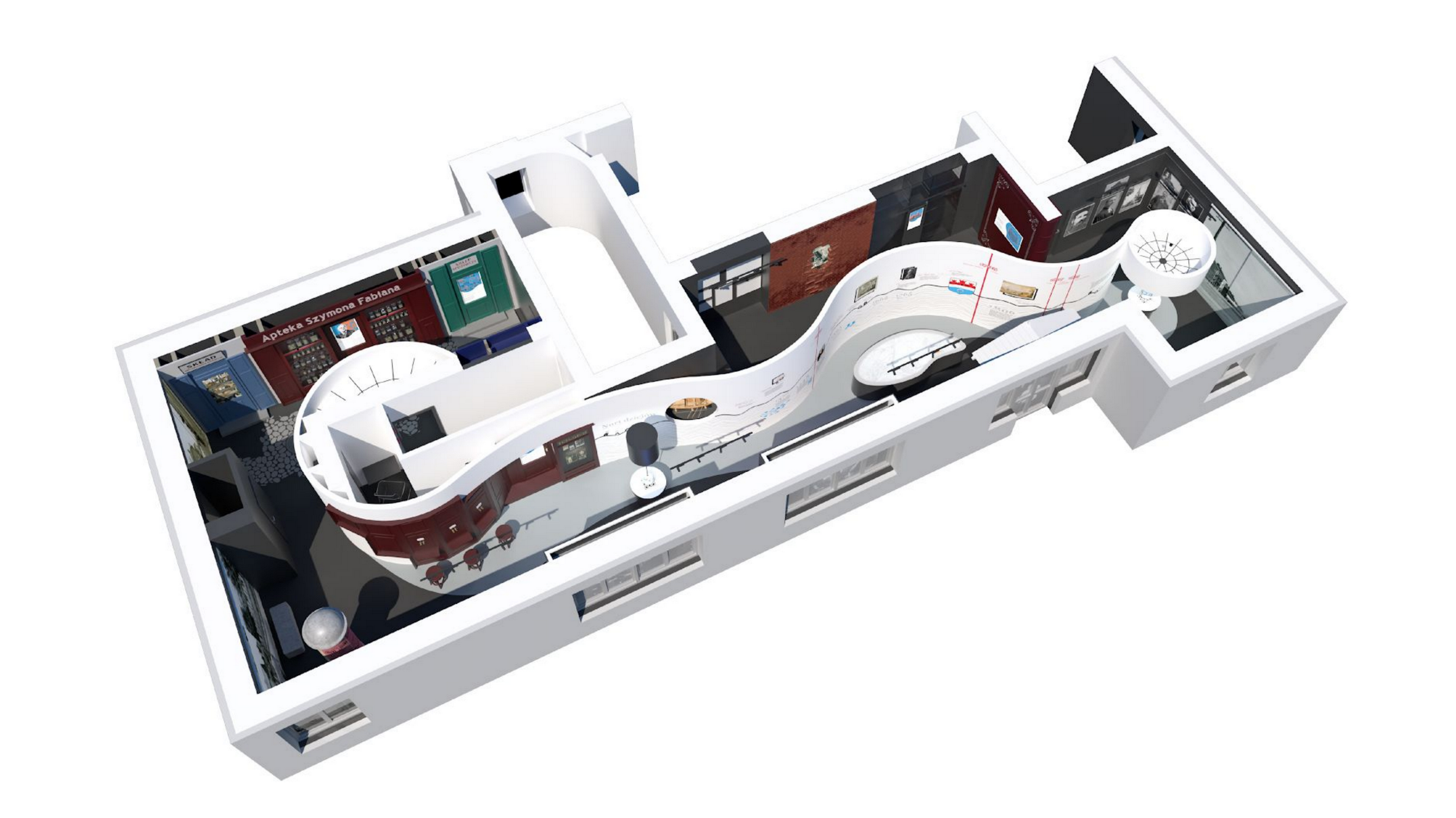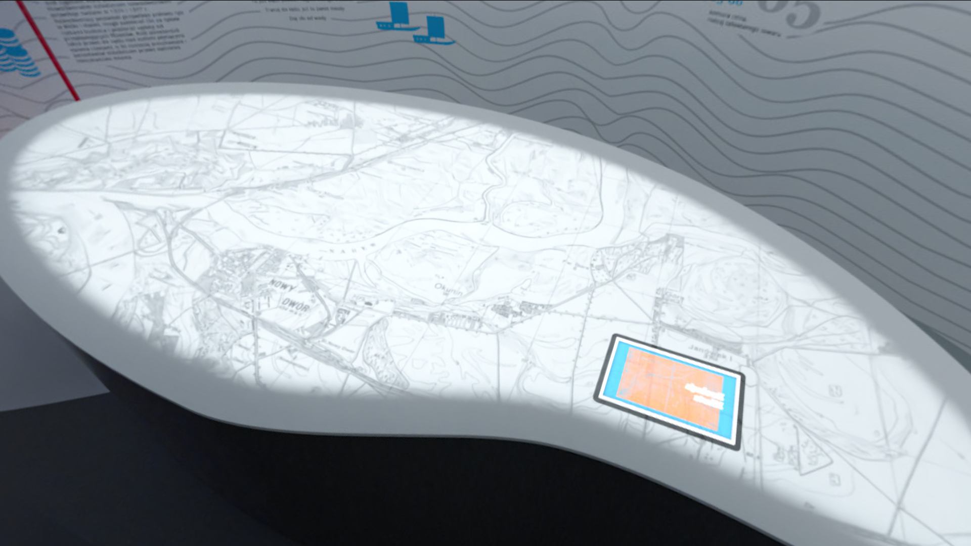 Uzupełnieniem jest interaktywny video-mapping na symbolicznej, fizycznej mapie miasta - rozwój terytorialny, fabryk, mostów, szlaków handlowe, miejsca kultu. Historia widziana z lotu ptaka, sterowana z infokiosku.