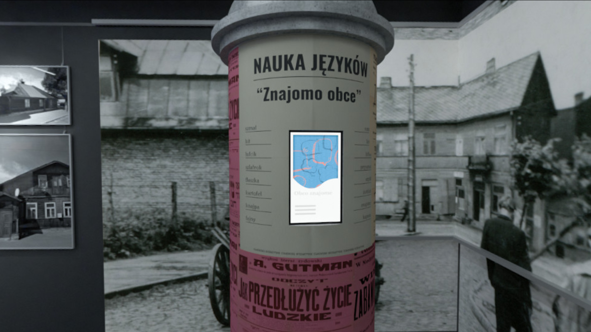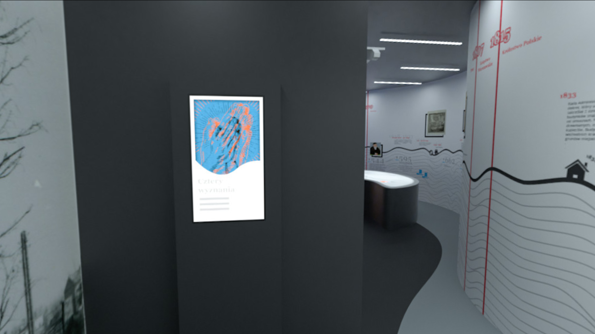 Jednym z najważniejszych wątków wystawy jest współistnienie czterech religii. Zaprojektowaliśmy stanowisko AR (ang. Augmented Reality, tzn. Rzeczywistości Rozszerzonej), na którym zwiedzający ogląda trójwymiarowe rekonstrukcje budowli sakralnych - kościoła, cerkwi, synagogi i świątyni ewangelickiej - z możliwością zdjęcia dachu i zajrzenia do środka. Obok, w oknach biblioteki, zainstalowaliśmy dwustronne wydruki rodzin różnych wyznań przy wieczornym posiłku, w tym samym kadrze, z różnicami widocznymi w wystroju, strojach i rytuałach. Wieczorem widać je z ulicy - wystawa dosłownie wychodzi poza mury.