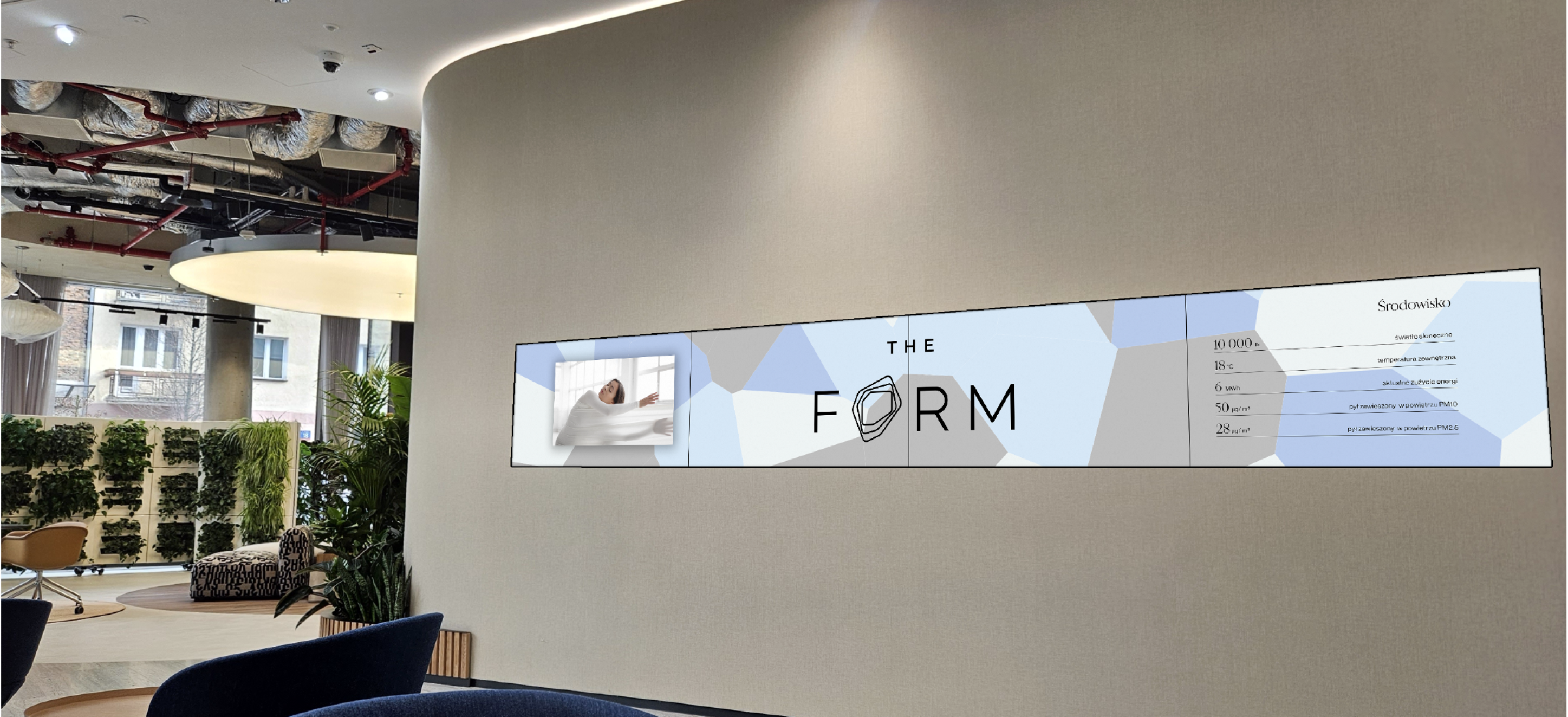 The Form to dla nas przykład kierunku, w którym zmierza architektura komercyjna. Budynek przestaje być pudełkiem z windami i klimatyzacją - staje się miejscem, które komunikuje się ze swoimi użytkownikami. Ekrany w lobby to nie dekoracja - to warstwa informacyjna architektury, tak samo istotna jak oświetlenie czy akustyka.
